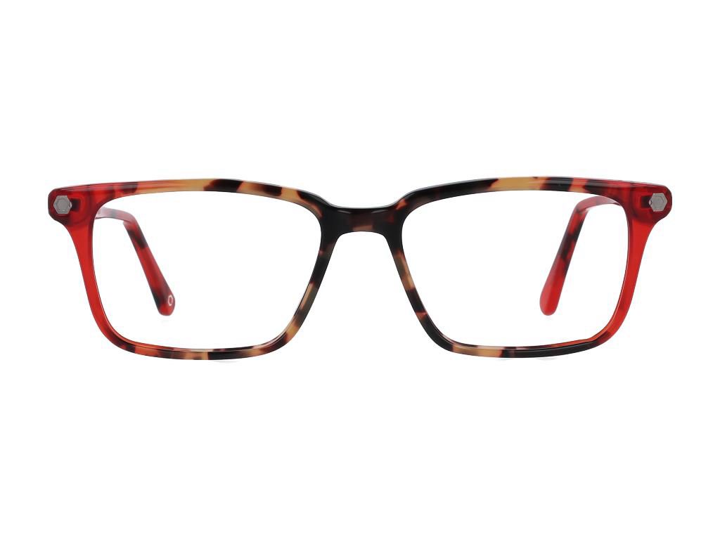 Red Acetate Eyeglasses For men, with square Rectangular.